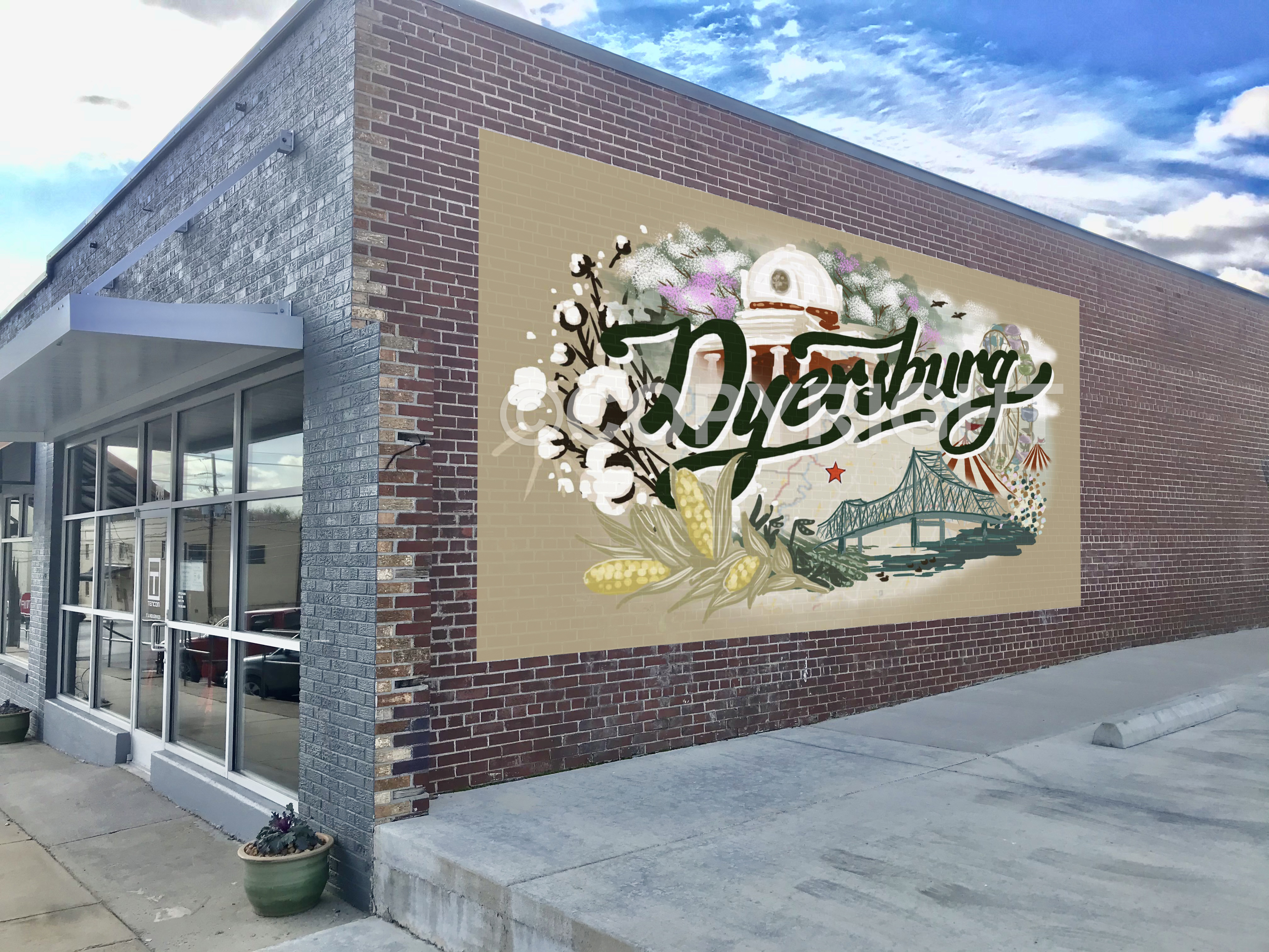 The Dyer County Adult Leadership Class of 2018-2019 is planning a mural to be painted on the north wall of the Tencom / Mill Workspace building located at 217 South Mill Avenue in Dyersburg, Tennessee.